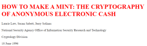 They expect us to believe some mysterious Japanese man created the blockchain technology and simply evaded all world governments. They claim Bitcoin is an anti-government vehicle, but it is a bureaucrat’s dream because it allows them to track where funds are coming from and going. In 1996, the US government released a white paper entitled, “How to make a mint: the cryptography of anonymous electronic cash.” Released by the National Security Agency Office of Information Security Research and Technology, this document explains how a government agency could create something like Bitcoin or another cryptocurrency. They had been attempting to create one for years and then magically Bitcoin came on the scene.