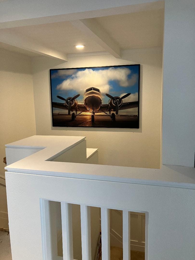 $550.00 for redesigning the low wall. A 2′ x 3′ opening was created to bring more natural light into the 18′ stairwell.
