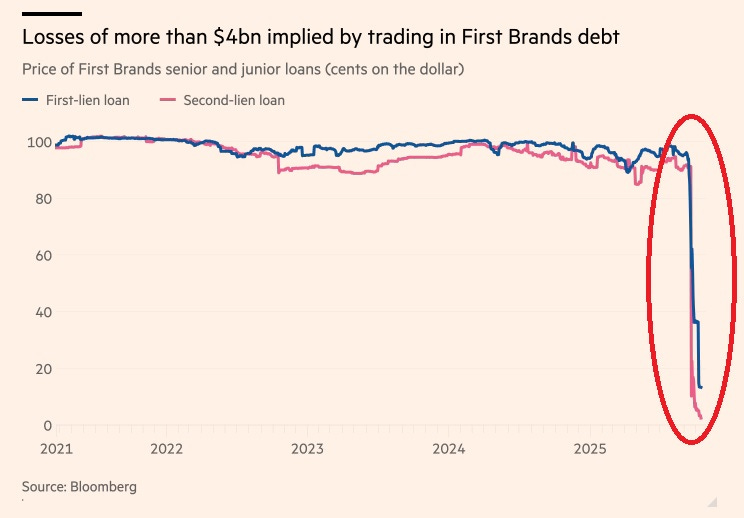 - The First Brands collapse WIPED OUT $4 billion in leveraged loans held across ~80 CLOs from PGIM, Franklin Templeton, Blackstone, and others. The sudden failure is a major warning for the broader credit market and leveraged loan sector.