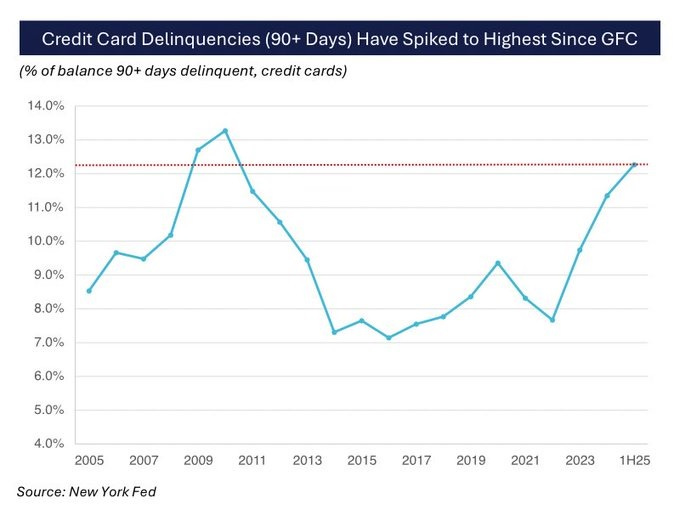 But of course, shadow banking is just one of our problems. Others include soaring credit card delinquencies…