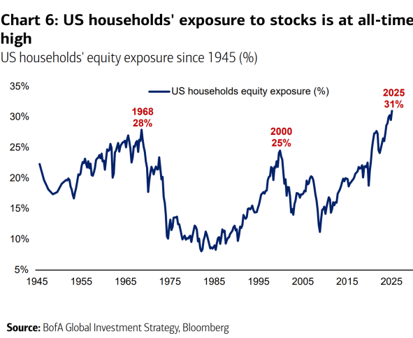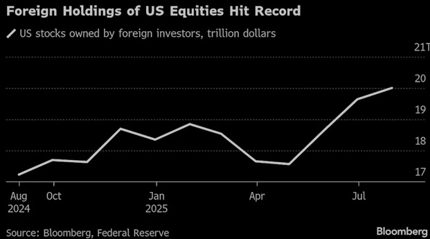Foreigners now own ~30% of all US stocks (valued at ~$20 trillion), the highest percentage ownership in 80 years, as capital continues to come to America for safety and opportunity. The idea that “American exceptionalism” is a thing of the past is losing traction.