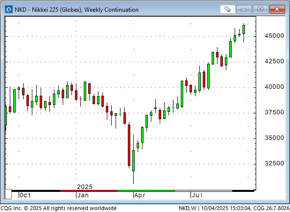 The Japanese Nikkei Index also rallied to a record high this week, up ~52% from its April lows.