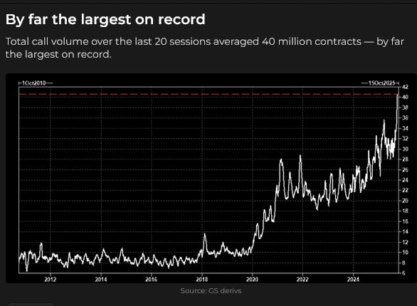 Speculation is also intensifying. Nearly two-thirds of SPX option volume is now ODTE (Zero Days To Expiration – in other words, the option’s life is one day).