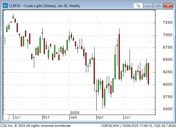 The January contract of Nymex WTI briefly traded below $60 this week as crude oil is pressured by supply/demand issues. Technology (especially fracking) has been a weight on the crude oil price.