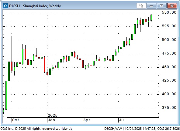 The Shanghai Index rallied to a 4-year high this week, up ~30% from its April lows.