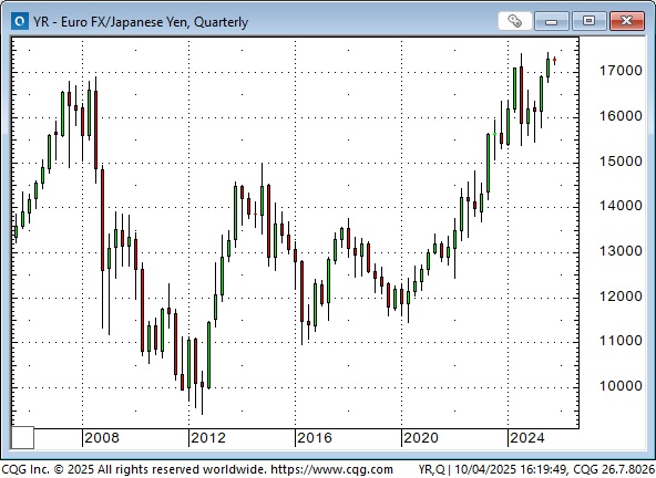 I also wonder if the Trump administration will demand FX revaluation across Asia, perhaps with different targets for different countries. I limit my trading to exchange-traded futures, so I’m buying Yen against USD and looking to buy Yen against the Euro, given the Euro’s record highs against the Yen.
