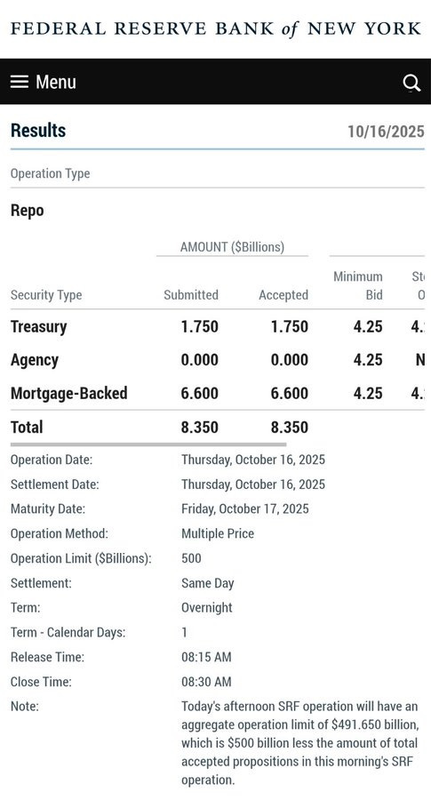On October 16th, 2025, the Federal Reserve Bank of New York quietly injected $8.35 BILLION into the financial system through something called a Repo Operation, and that’s just what they admitted publicly. Nearly 80% of that was backed by mortgage-backed securities, not Treasuries.