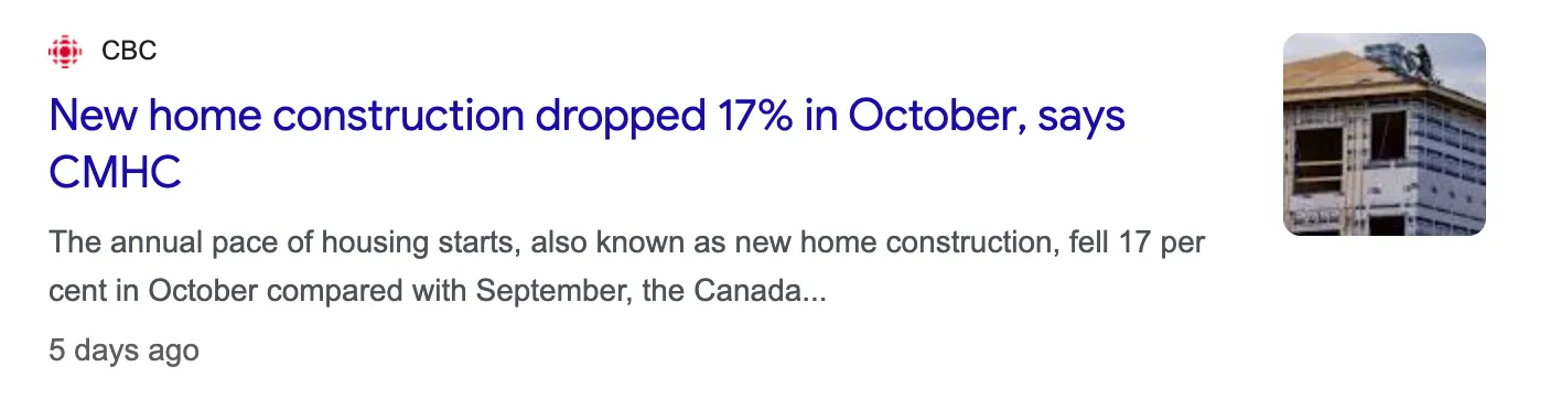 The seasonally adjusted annualized rate of housing starts was 279,234 units, up from a revised 244,543 units in August. Remember, housing starts are reflective of investment decisions performed several years ago. A housing start, as defined by CMHC, is counted once the foundation is built back to grade. In other words, after the land was sourced, permits approved, pre-sales sold, land excavated and foundation poured. In other words, a seriously lagging indicator that gets muddied further with seasonal adjustments.