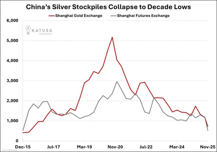 Shanghai silver inventories have just collapsed to decade lows.