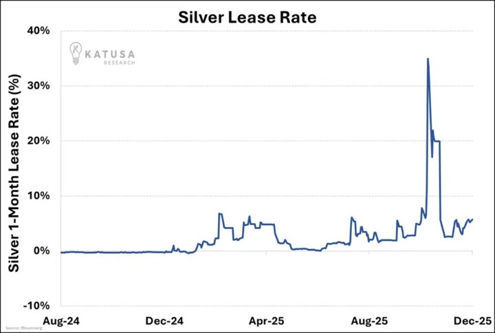 We are seeing reports that silver lease rates (the cost to borrow physical metal) have spiked.