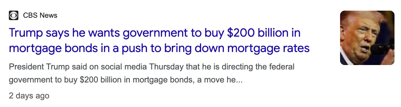 With US midterms around the corner, the Trump administration is rolling out the red carpet for voters. In the last few weeks, Trump has floated $2000 tariff dividend cheques, a plan to cap credit card interest rates at 10% for one year. Although even more shocking is his plan to ban institutional buyers of residential real estate, and directing Fannie and Freddie (Government-sponsored enterprises (GSEs) that buy and guarantee mortgages) to buy $200 billion in mortgage bonds to bring down mortgage rates.