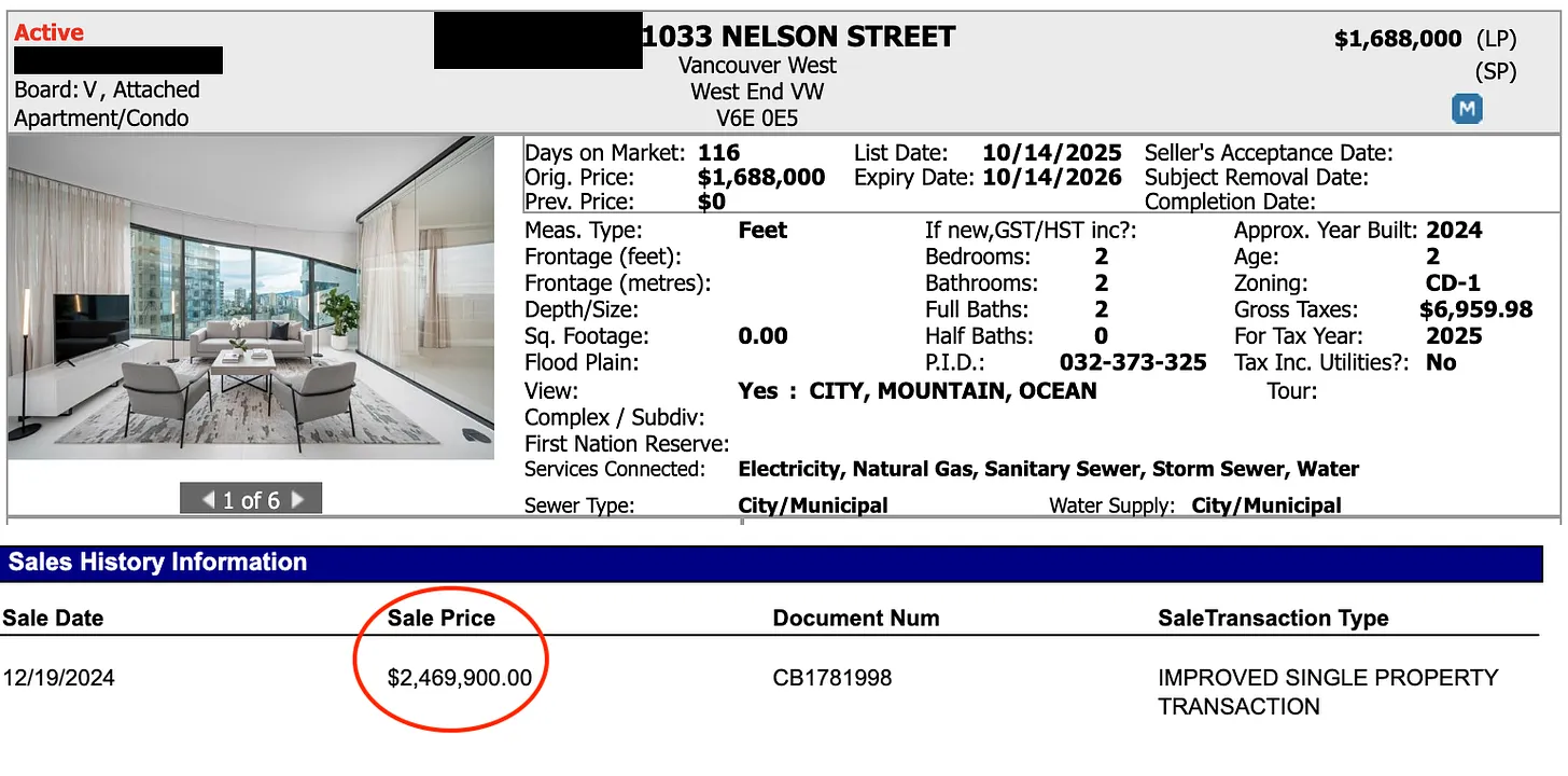There’s another one here at $1,698,000 that originally closed for $2,560,100 in July 2025.