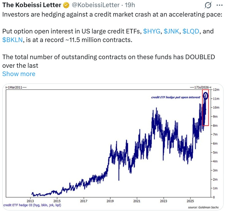 The angst isn’t limited to Blackstone funds. Put options on related ETFs are seeing massive demand: