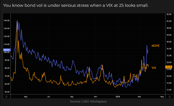 Bond VOL (the MOVE index) has risen sharply in March.