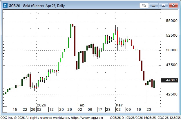 Gold hit record highs at the end of January at ~$5,600, but fell as much as $1,400 (~25%) to last week’s lows. It is now ~$4,500. It seems “counterintuitive” for gold prices to fall sharply while a war is raging in the Middle East and crude oil prices are sharply higher. This may be a function of 1) gold rising “too high, too quickly” on speculative buying in January, resulting in “margin call” selling as prices fell, 2) selling by Middle Eastern accounts that needed to raise cash, and/or 3) profit-taking by long-term holders (Central Banks/SWFs) who saw weaker prices while a war raged on as a “tell” that prices had topped out. If governments continue to debase their currencies by running fiscal deficits, the gold market will likely resume its rally at some point.