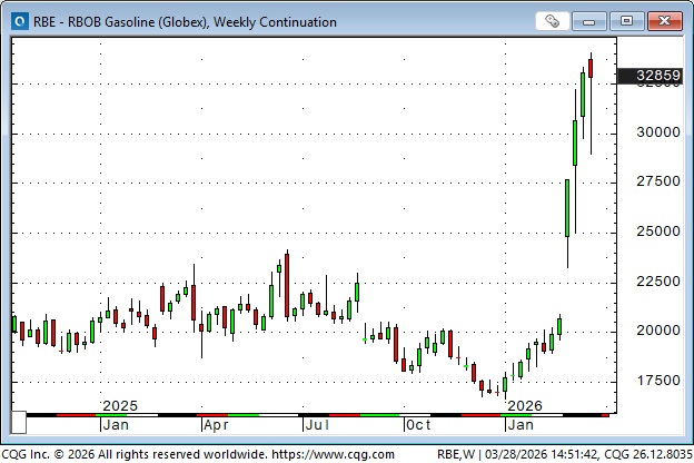 Nymex front-month gasoline futures are up ~58% since the war started.