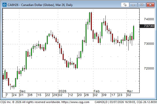 While other G10 currencies were falling early in the week, the CAD stayed “even” with the USD, and on Friday, with WTI prices soaring, the CAD rallied hard, posting the highest weekly close since June 2025. The CAD is a true petro-currency! (Justin Trudeau must be weeping!)