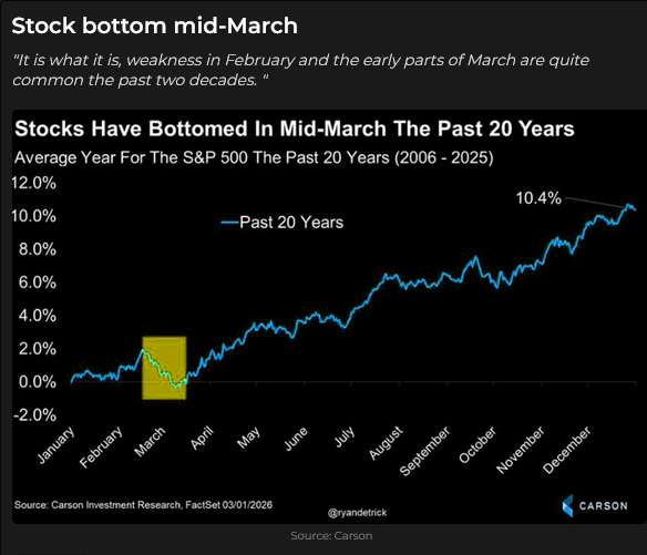 I bought the S&P a couple of times early this week (if the market won’t fall on soaring WTI, what will it do if the conflict ends?). I was money ahead each time, but I was stopped for small losses, and then I decided to stop trading for the week. I was puzzled by breakdowns in cross-asset correlations and decided to back away. I rediscovered this week that I’m more risk-averse than I thought! Thankfully, as my dear, departed friend, Peter Appleby, told me so many times, “There’s a rumour going around that the markets will be open again next week!”