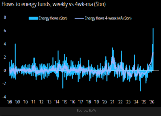 BoA shows strong flows to the energy sector YTD.