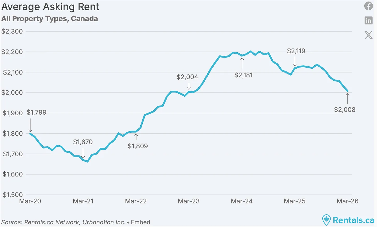 As we have highlighted previously, the rental market is undergoing a significant correction, and it appears poised to continue.