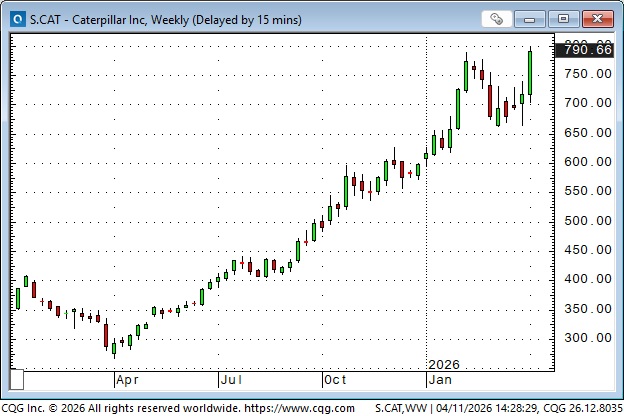 CAT is also at all-time highs, up nearly 200% in the last 12 months. (Power generation trumps mid-east wars).