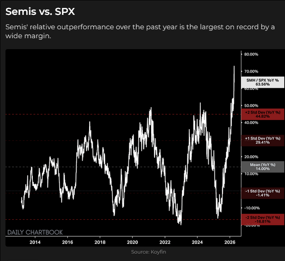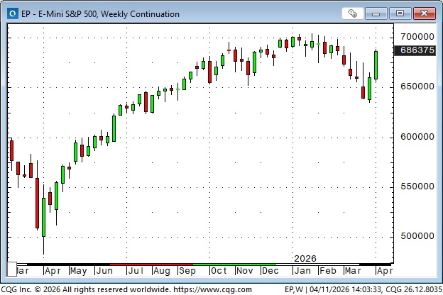 The S&P had fallen for five consecutive weeks since the start of the war before reversing higher. This week’s rally was the biggest weekly gain since the recovery from Liberation Day in April 2025.
