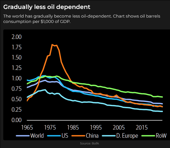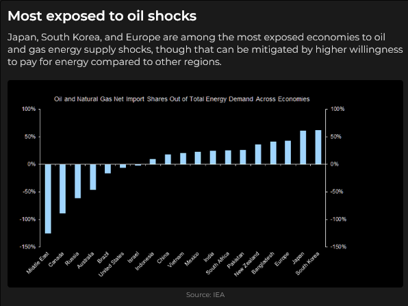 Obviously, some countries are more exposed to oil shocks than other countries (Europe, Japan, South Korea and New Zealand come to mind) but I was puzzled to see Australia being less exposed than the USA on this chart from the IEA. Perhaps its because Australia is a major LNG exporter.