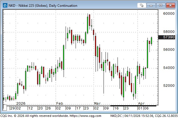 The Nikkei was at an all-time high at the end of February (up ~100% from the Liberation Day lows), but fell ~17% to the late March lows, before bouncing back sharply with other global indices.