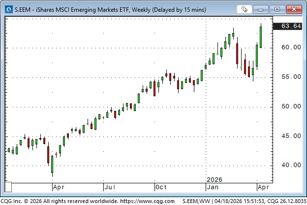 All of the leading global stock indices are above their pre-Iran war levels, with the S&P, Nasdaq, Russell, Nikkei, and emerging-market ETFs at new all-time highs.