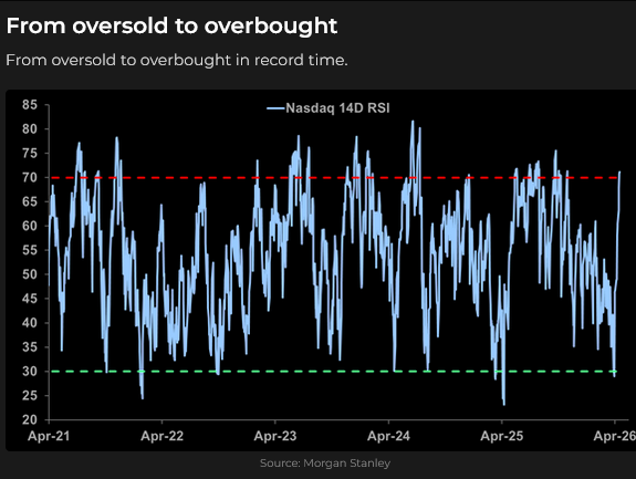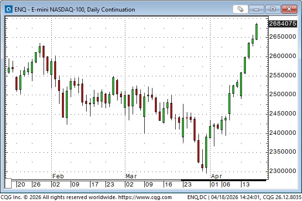 Across all markets, but especially in the equity markets, the moves over the last three weeks have been accelerated by the unwinding of positions. What began as short-covering in equities, as prices started to rise on Friday, March 31, before the announcement of a ceasefire, became a squeeze higher as shorts HAD to get out. Then that turned into a FOMO “get me in at any price” runaway rally. IT’S LIKE THE WAR NEVER HAPPENED! (If you don’t count the death and destruction.)