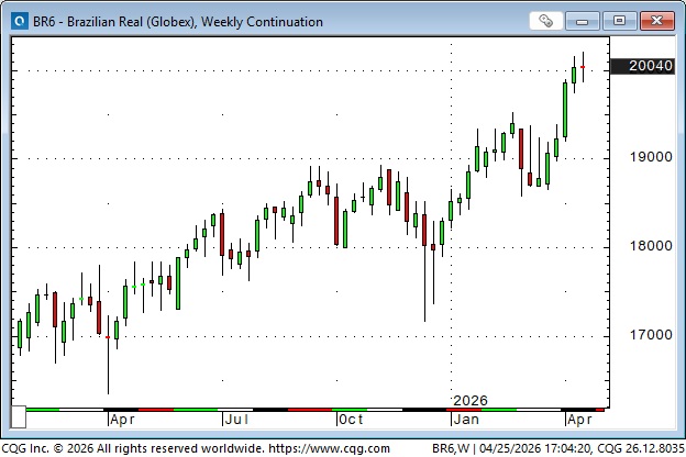 The Brazilian currency is also on a roll. Brazil’s crude oil production is ~4 mbd (#8 in the world rankings), and it exports ~2.5 mbd, with ~65% of that going to China.
