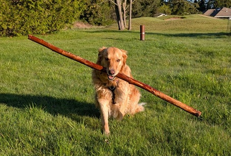 Spring temperatures are welcome here in the Pacific Northwest, and Barney and I are truly enjoying our long mid-day walks. Barney will be five years old in September, but he still has a lot of puppy in him. He loves chewing on a good stick, the bigger, the better.